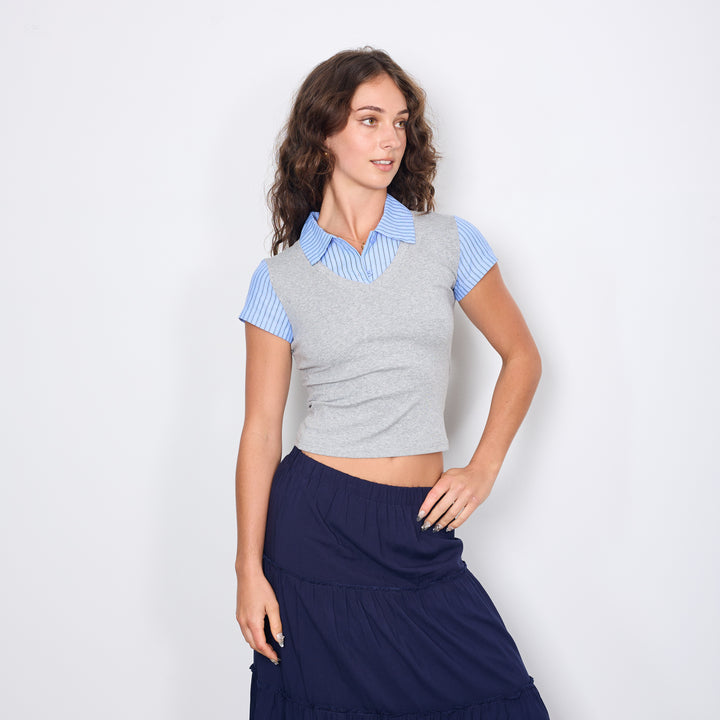 2 IN 1 KNIT SHIRT LIGHT GREY