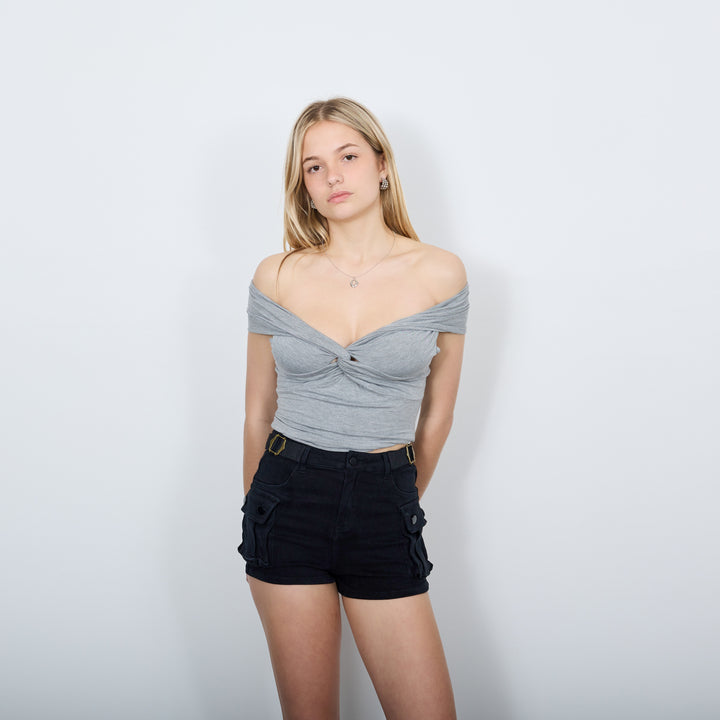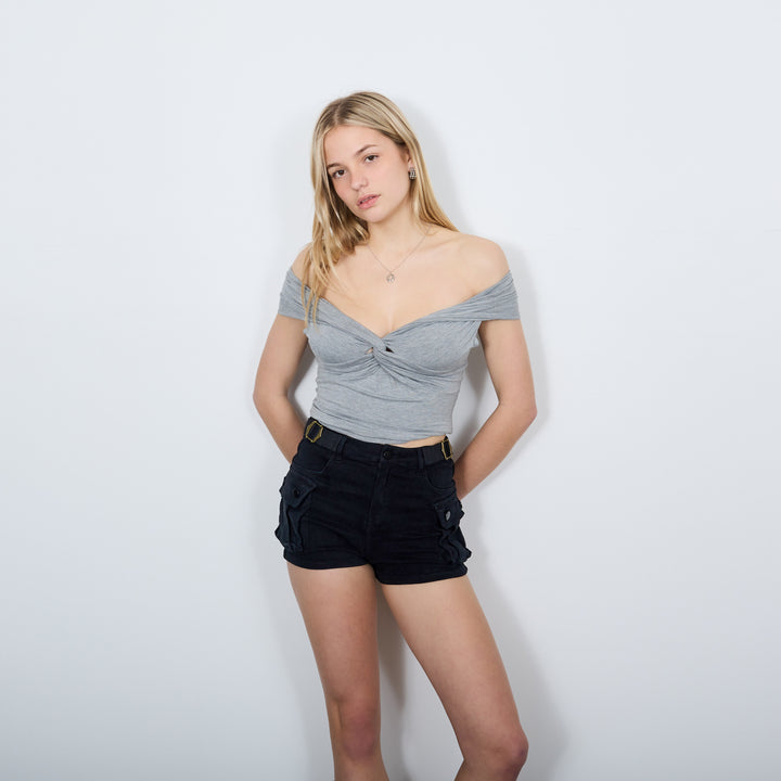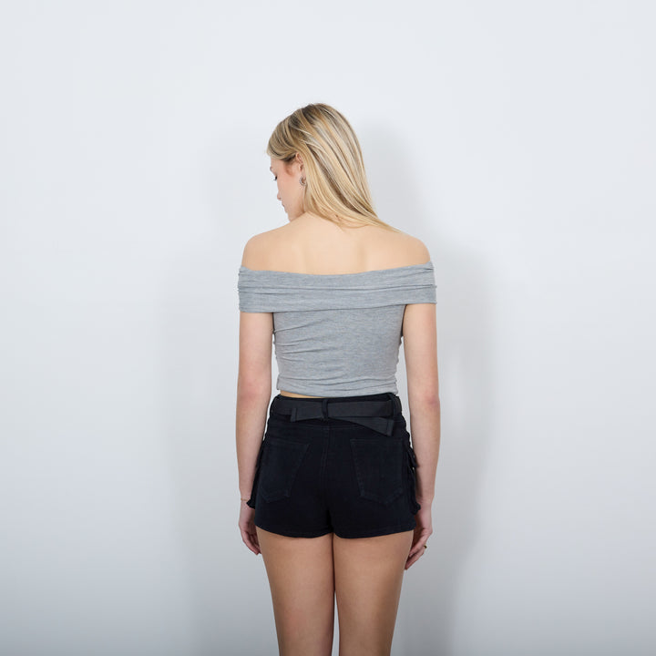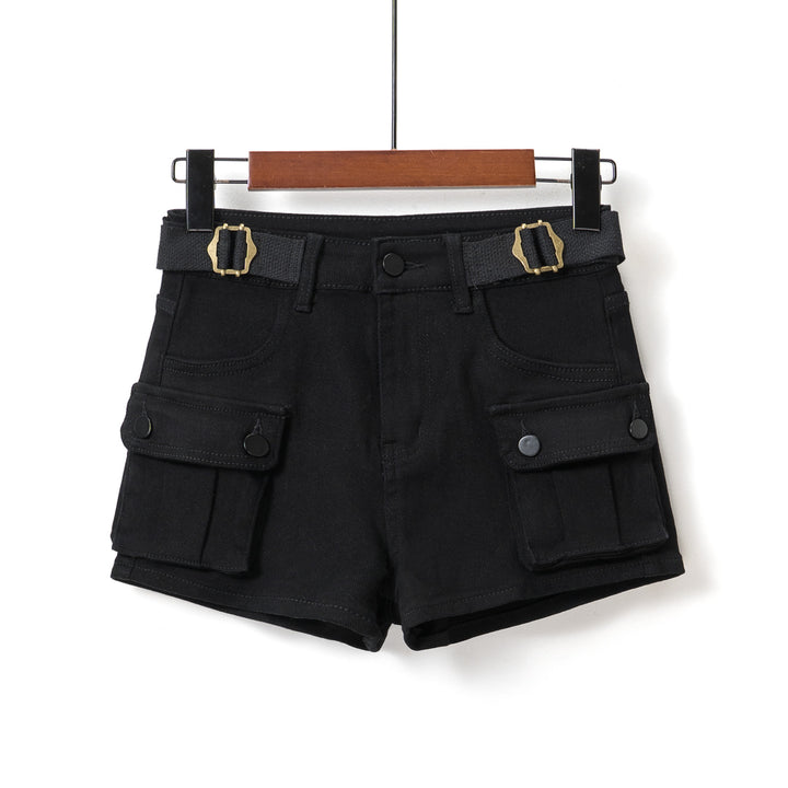 BASIC CARGO SHORTS WITH SIDE BELTS BLACK