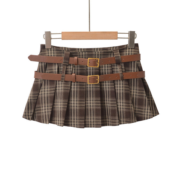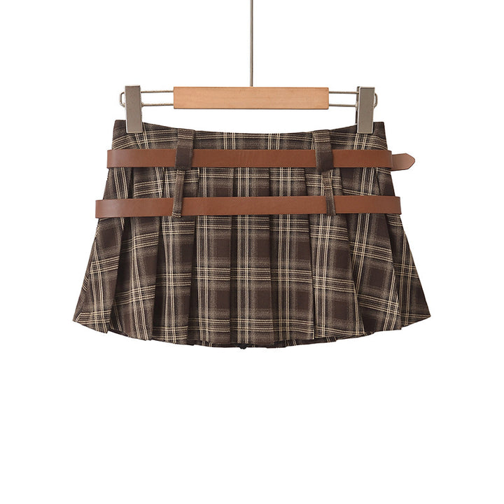 CHECKERED PLEATED MINI SKIRT BROWN