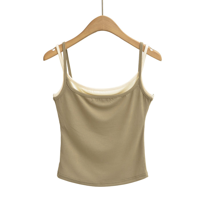 CONTRAST DOUBLE STRAP CAMI TOP GREEN