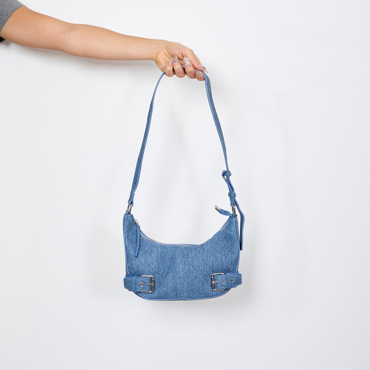 DOUBLE BUCKLE SHOULDER BAG DENIM BLUE