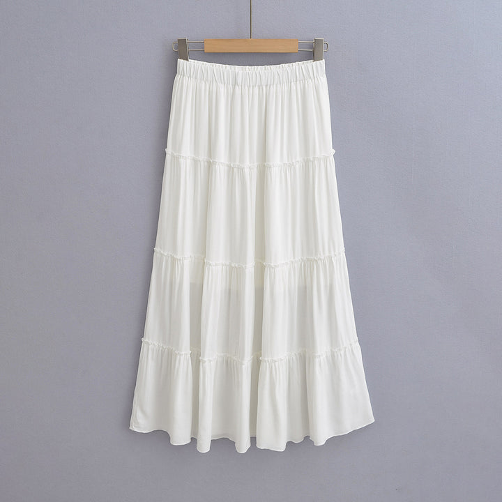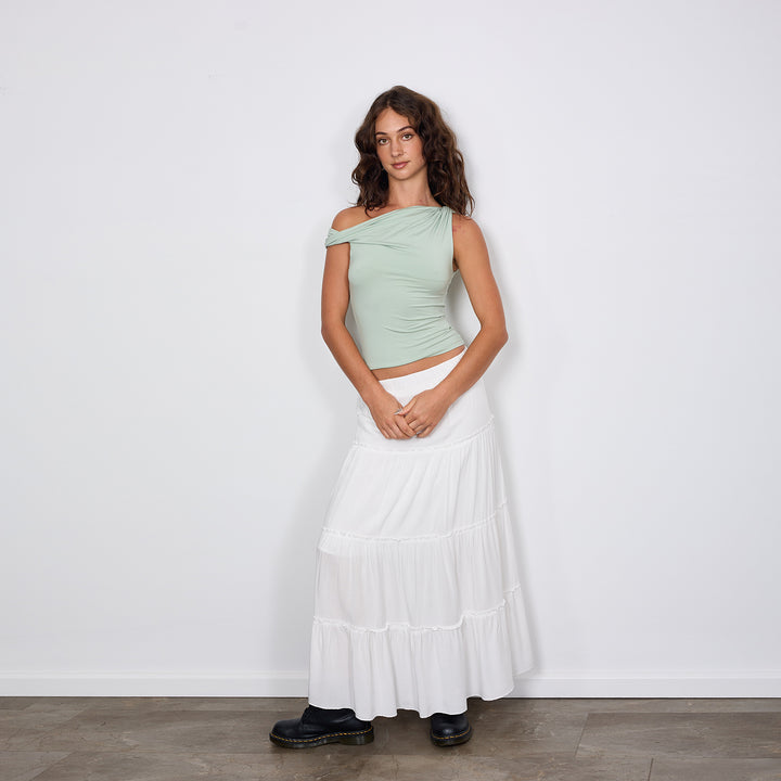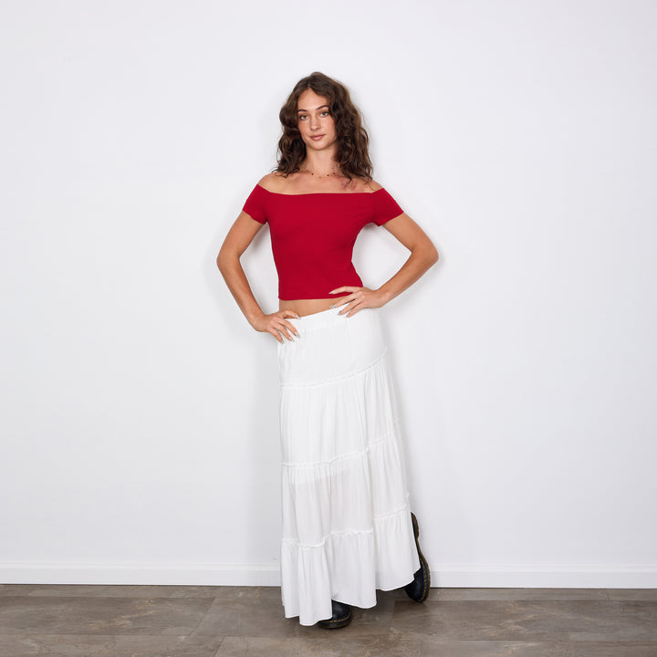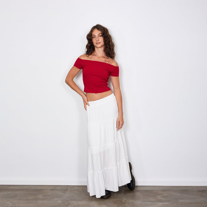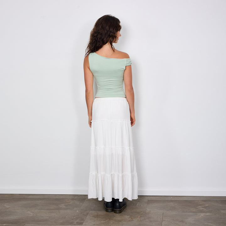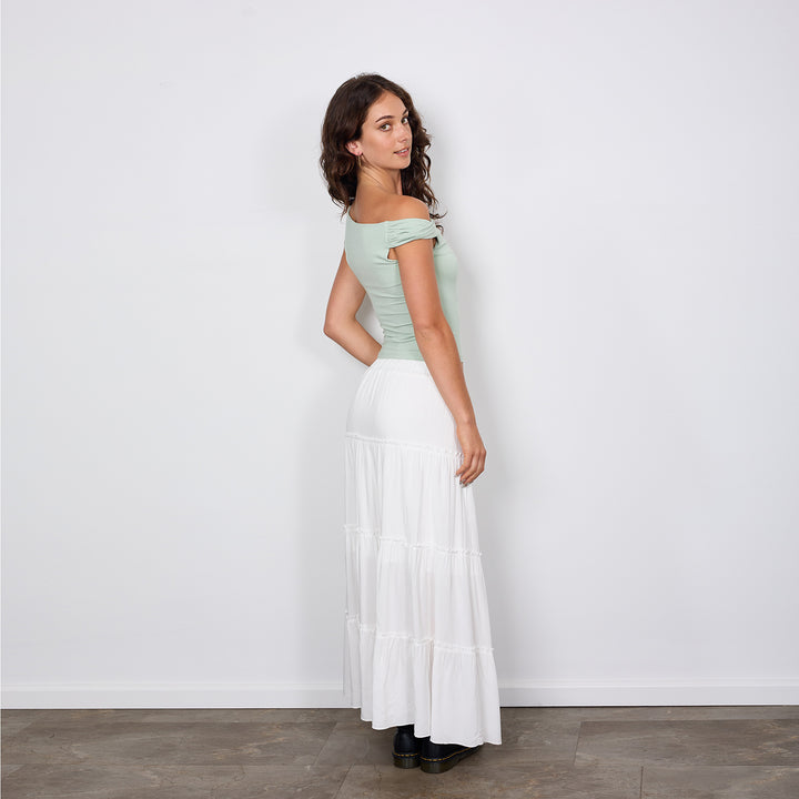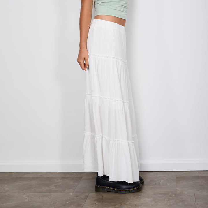 ELASTIC WAIST FRENCH MAXI SKIRT WHITE
