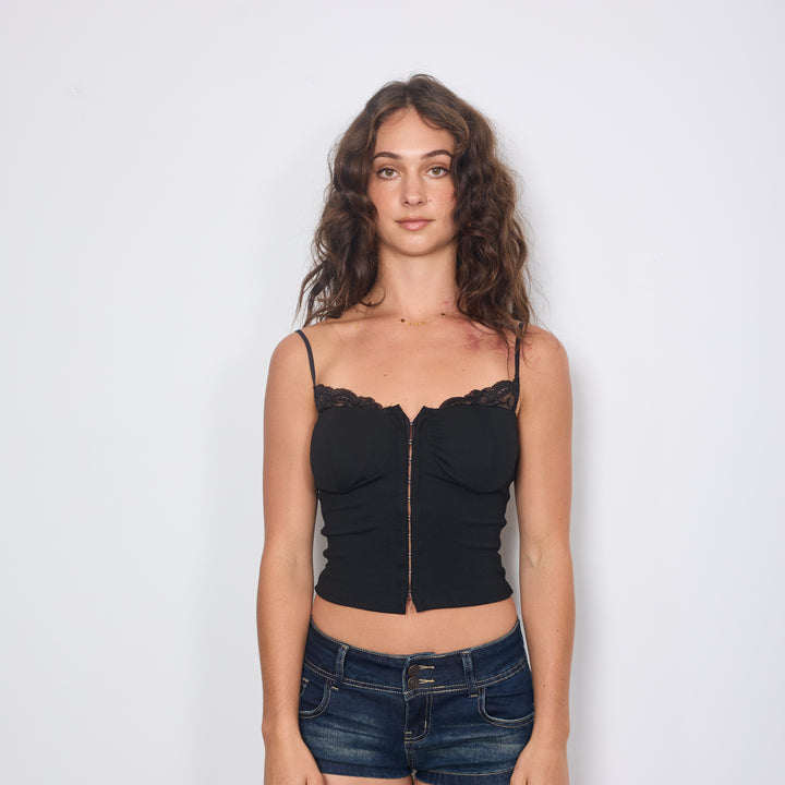 LACE TRIM FRONT CLOSURE CAMI BLACK