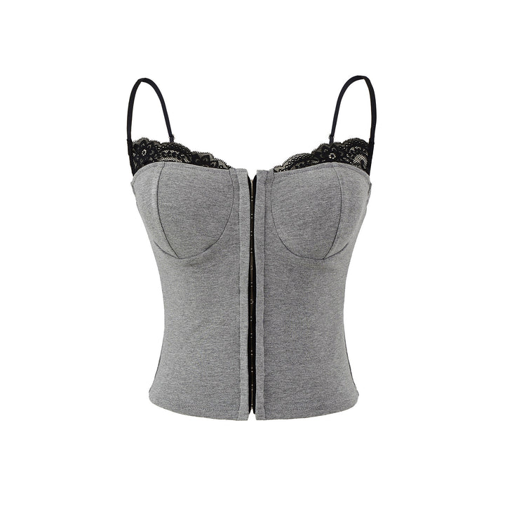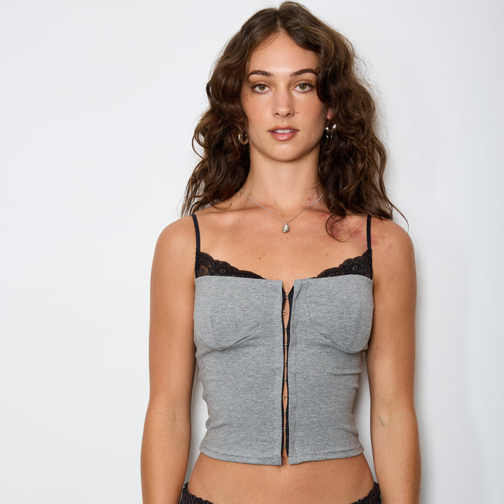 LACE TRIM FRONT CLOSURE CAMI GREY