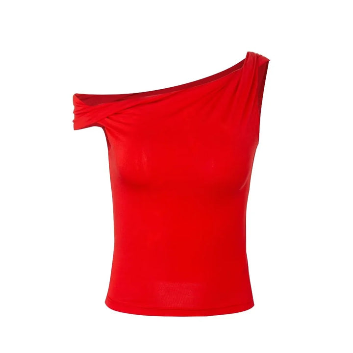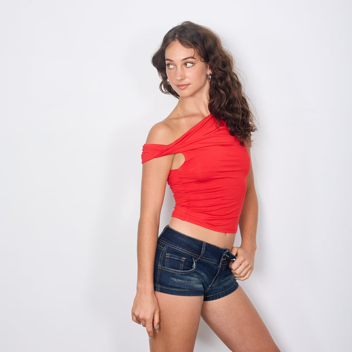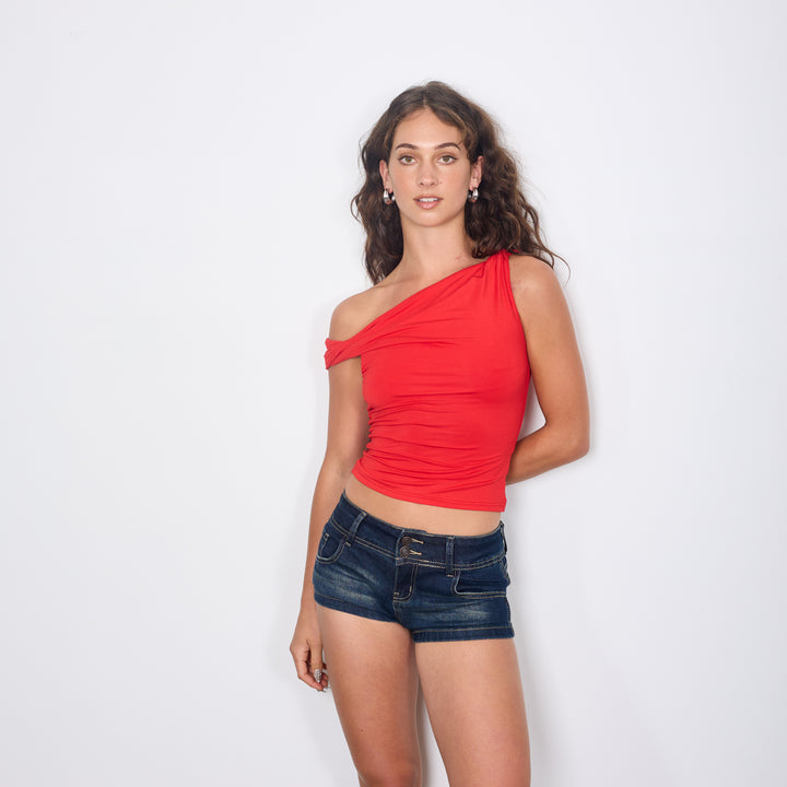 ONE SHOULDER OFF TOP RED