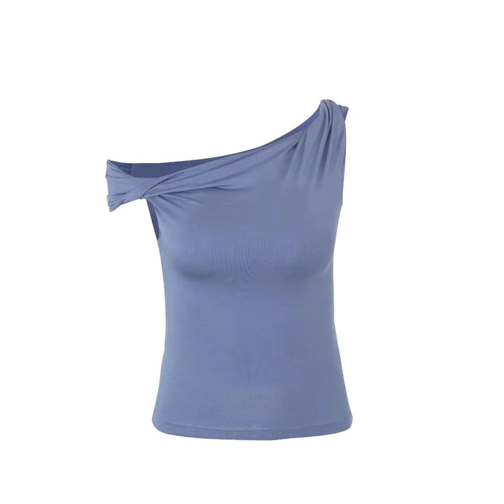 ONE SHOULDER OFF TOP SKY BLUE