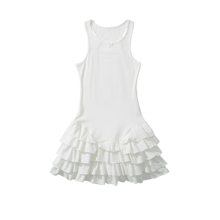 RUFFLED BOW MINI DRESS WHITE