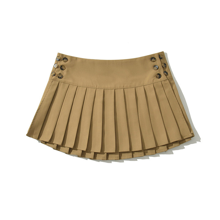SIDE BUTTON PLEATED MINI SKIRT KHAKI