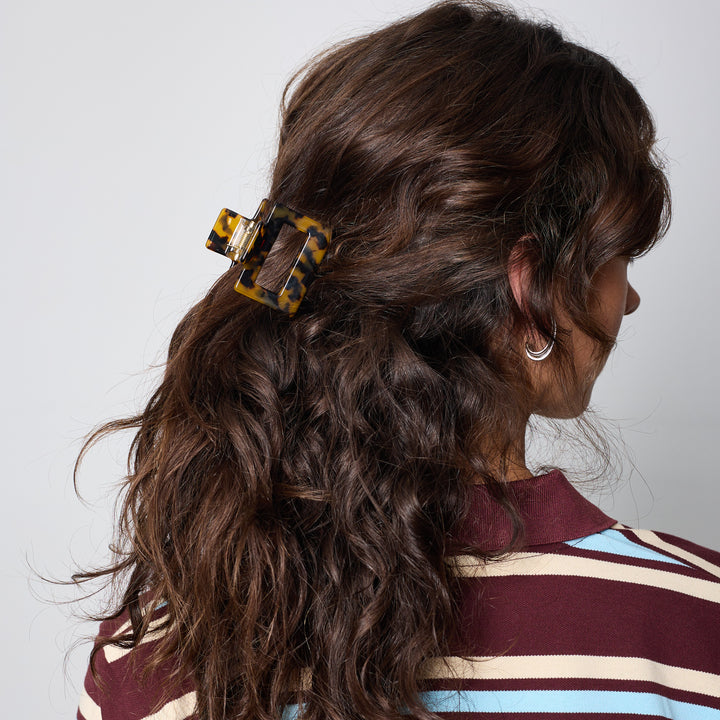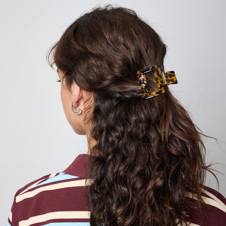 SMALL SQUARE HAIR CLIP DARK TORTOISESHEL