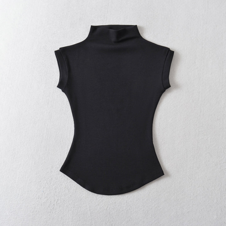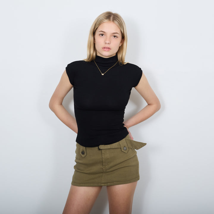 STRETCH TURTLENECK TEE TOP BLACK