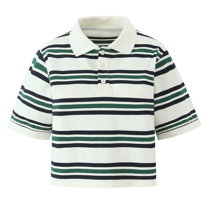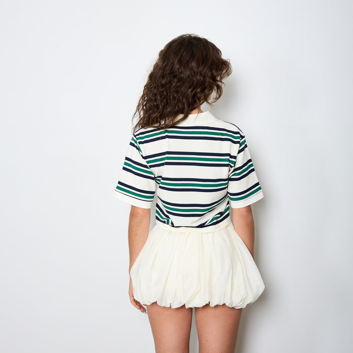 STRIPED OVERSIZED COLLARED T-SHIRT GREEN