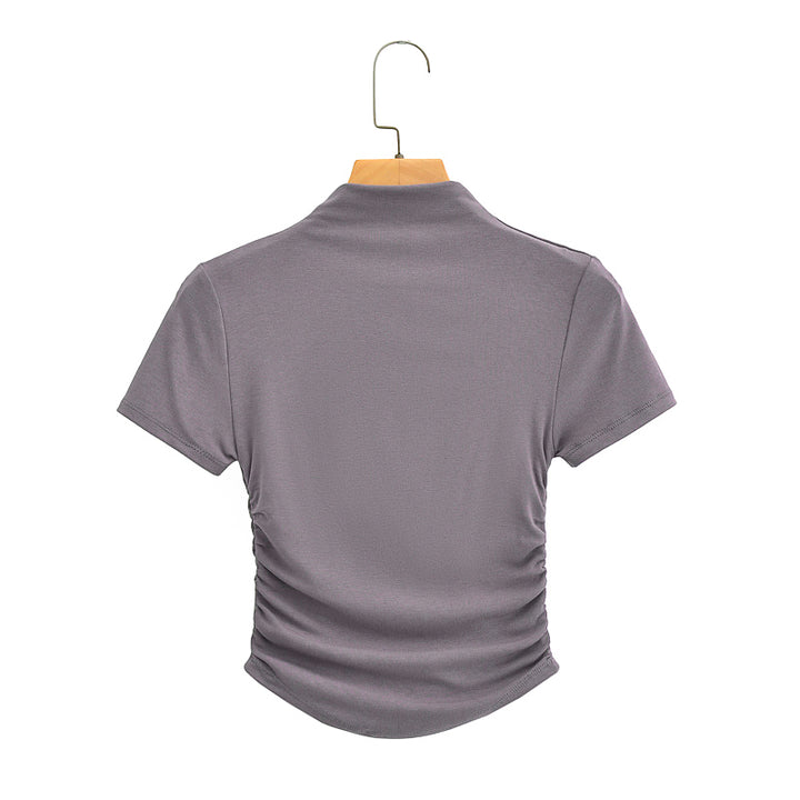 SUPERSOFT HIGH NECK RUCHED TEE GREY