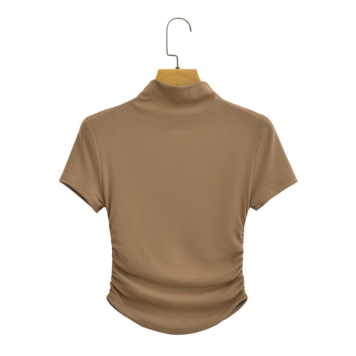 SUPERSOFT HIGH NECK RUCHED TEE KHAKI