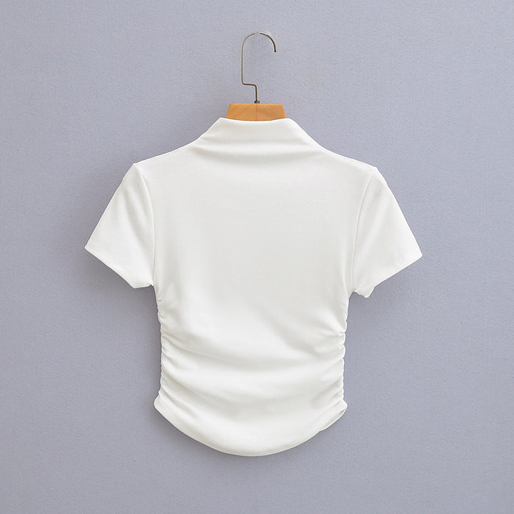SUPERSOFT HIGH NECK RUCHED TEE WHITE